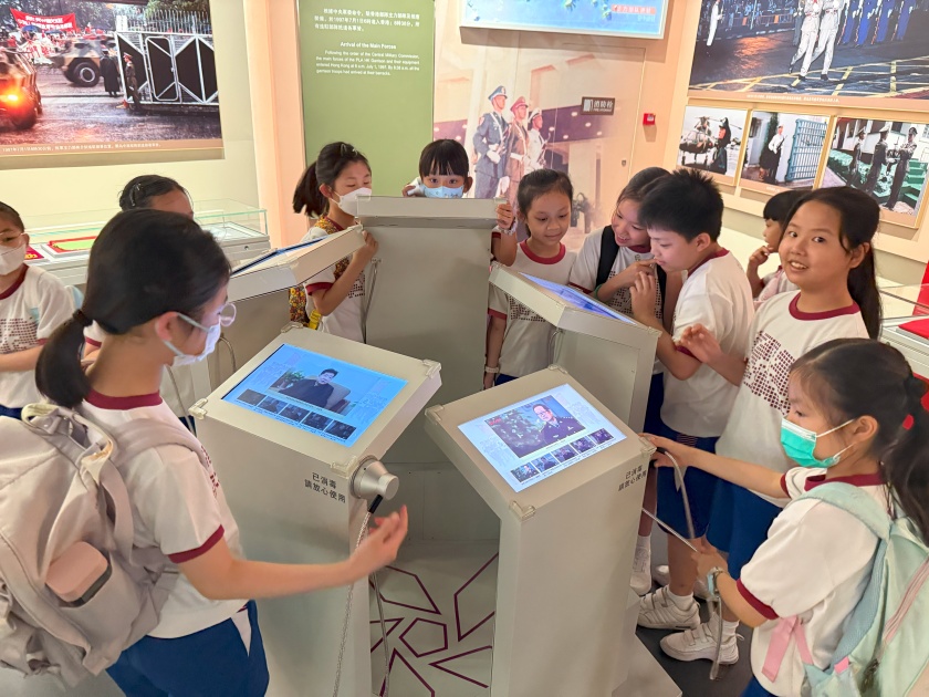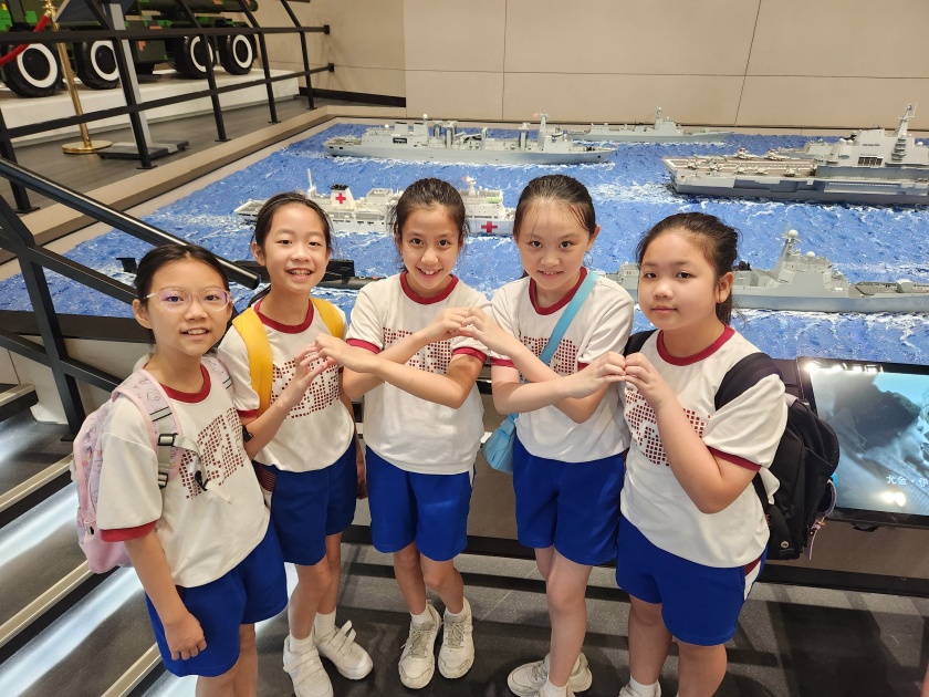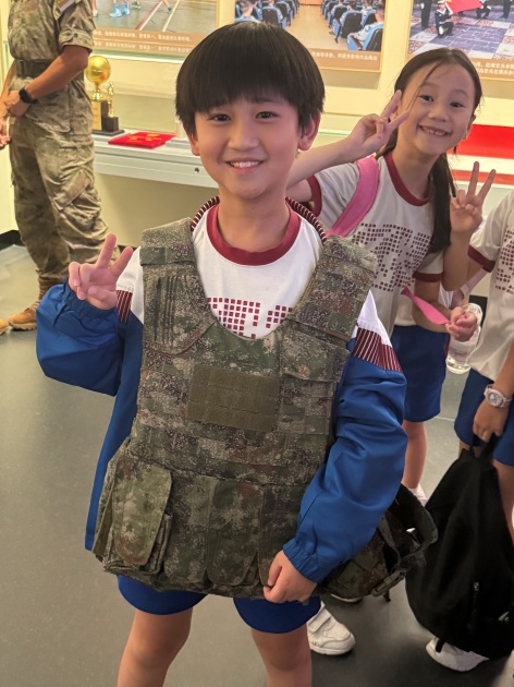 小四學生透過參觀昂船洲駐港部隊展覽中心,認識駐港部隊的歷史、發展及本港防衛工作。展覽中心展示各種軍事裝備、相片和多媒體資訊,讓學生增加對國防的認識。導賞員透過講解,介紹駐港部隊的日常訓練、主要任務及與香港社區的互動。學生可近距離觀賞軍車及穿著軍服的士兵,參與互動體驗,加深對祖國和香港安全的關注。參觀活動提升學生國民身份認同,啟發他們珍惜和平生活,明白維護安全的重要性。