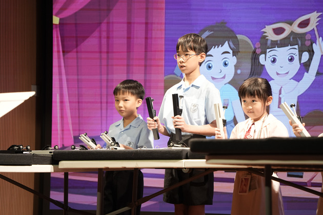 在7月12日的「2025才藝匯演」中,學生在舞台上展現他們的各種才能。當日的表演隊伍眾多,有來自本校的英語集誦隊、粵語集誦隊及普通話集誦隊;亦有來自一、二年級「成語故事演講比賽」的冠軍學生。更多的表演隊伍是來自校內不同的多元活動組別。同學們於台上充滿自信,充分表現出他們的多才多藝,全力展現他們的學習成果。在同學努力練習下,是次演出十分精彩。