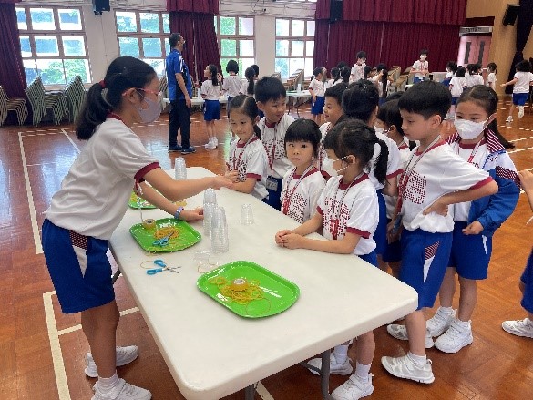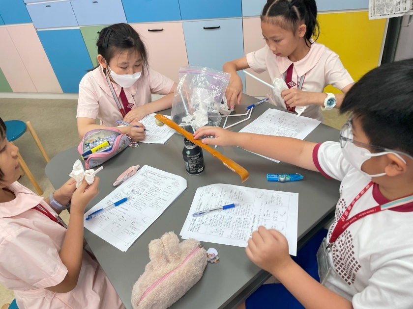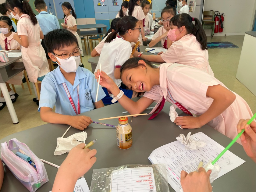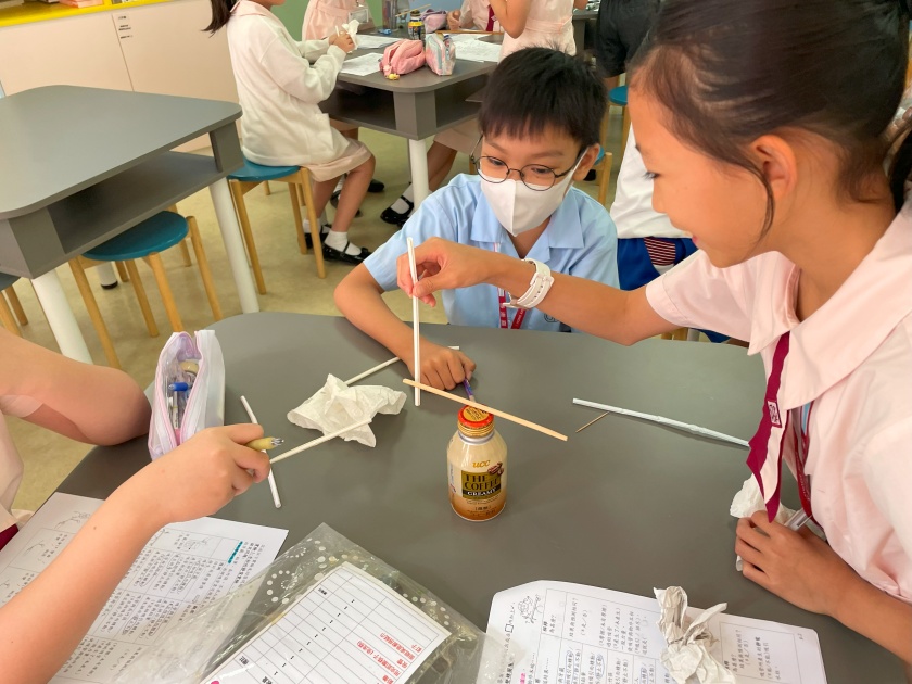 我校每年會舉辦以科探為主題的全校性活動,早會時由學生介紹當天活動的科學主題,然後會利用事先派發的製作指引或在校園電視台播放相關的製作內容,並於當天的兩個小息和午息進行相關活動。學生的反應熱烈,這些活動能提升學生對科學的興趣,製作容易,短時間內能完成,令學生很有成功感。