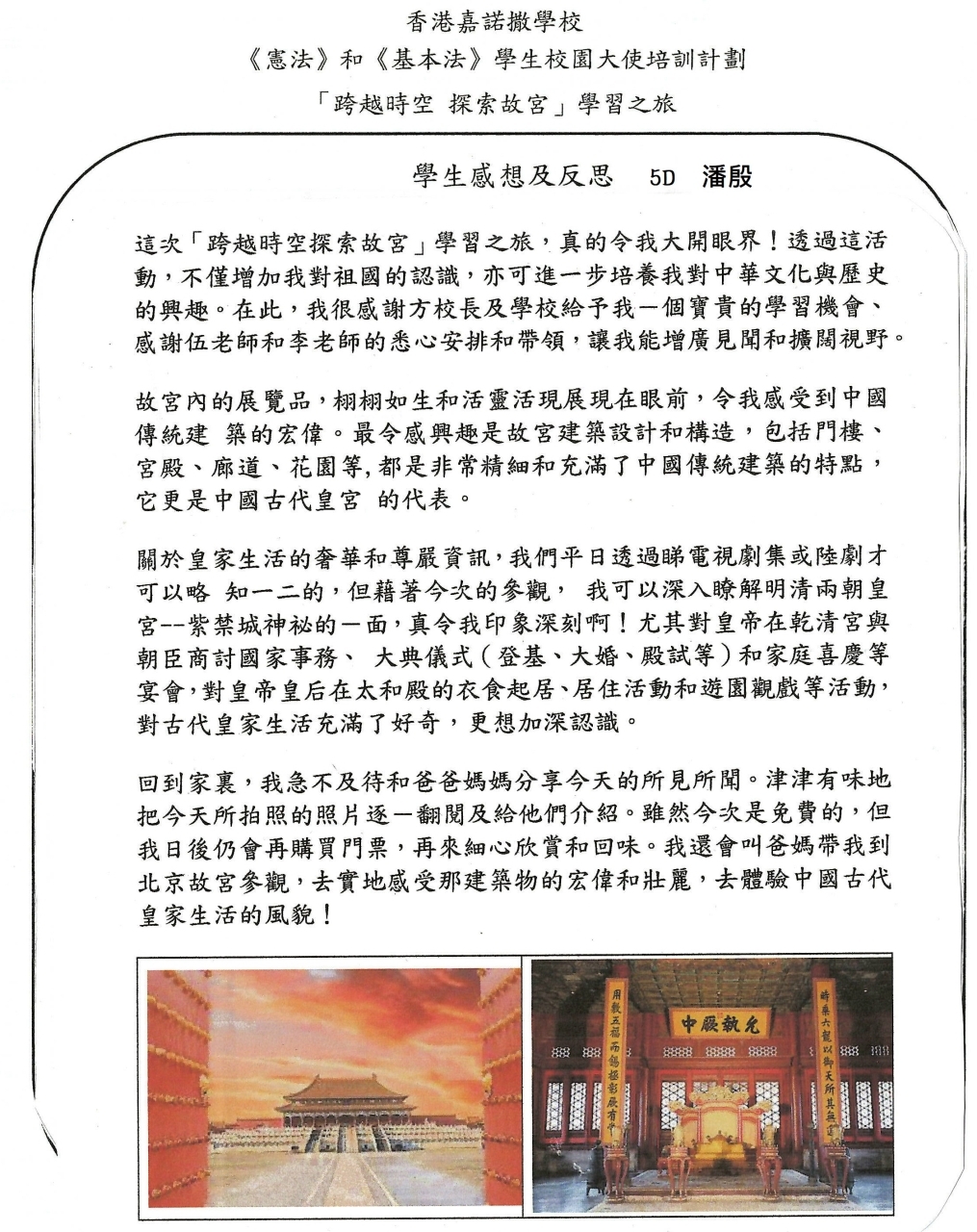 - 《憲法》和《基本法》學生校園大使培訓計劃 「跨越時空探索故宮」學習之旅