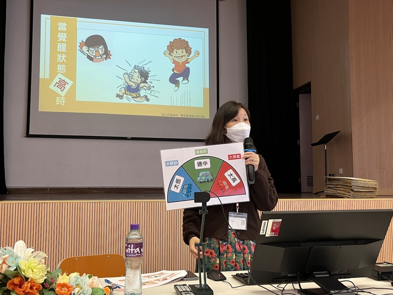 日下午,學校在禮堂舉行了「提升執行技巧:課堂支援模式」老師工作坊。工作坊中,首先由校本教育心理家何梁雋寧女士講解如何提升學生的執行功能,她建議老師可以利用自醒狀態咪錶幫助學生察覺自己的狀態,以便在有需要時作調整。此外,曾經參與計劃的老師也分享了去年實戰經驗,她們均能把所學的知識應用於日常的教學中,並有效地提升學生的相關技巧。