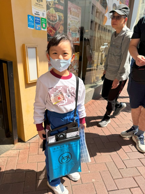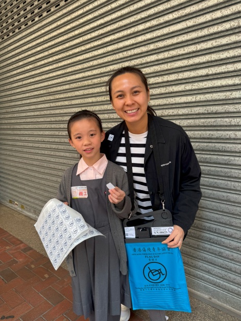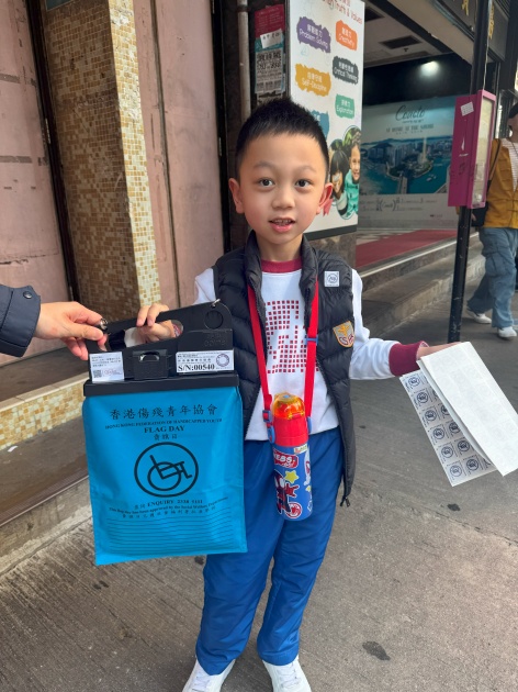 本校於3月22日(星期六)為香港傷殘青年協會籌款,同學及家長們都踴躍參加,約有150位同學參與當天「親子賣旗」服務。