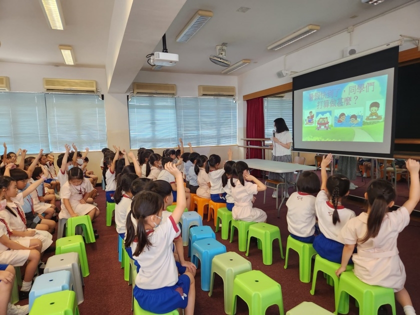 級會內容:本校在7月10日進行了一年級級會,這次級會的主題是「善用餘暇」和「設定目標」,目的是讓同學明白如何在暑假為自己訂下具體和合適的目標。首先,同學觀看兩段影片《自行安排的暑假》和《潼潼的暑假》,內容是關於兩名小孩如何為自己安排暑假,然後邀請同學回答老師的提問,從而讓同學明白妥善安排暑假的重要;接着,再播放《小豬做家務》,讓同學明白每個家庭成員都有做家務的責任,並了解一年級同學適合做哪些家務;最後,老師派發個人暑期時間表,讓同學妥善規劃暑期活動,並記錄在工作紙上。