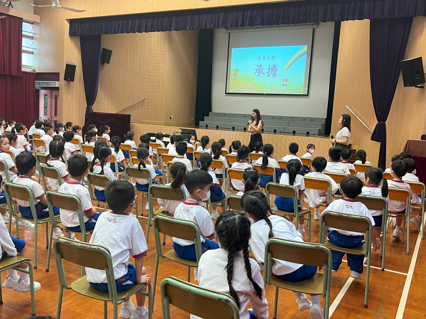 一年級是次級會主題為「承擔責任」,同學透過觀看一條卡通短片及問答形式,明白到人人都有自己的責任,以及沒有履行責任的後果。例如,個人方面,我們需要準時起床上學,否則上學會遲到;家庭方面,媽媽需要為家人準備午餐,否則家人會肚子餓;社會方面,店員需要營業商店,否則人們沒有材料煮飯等等。