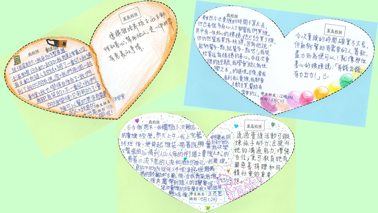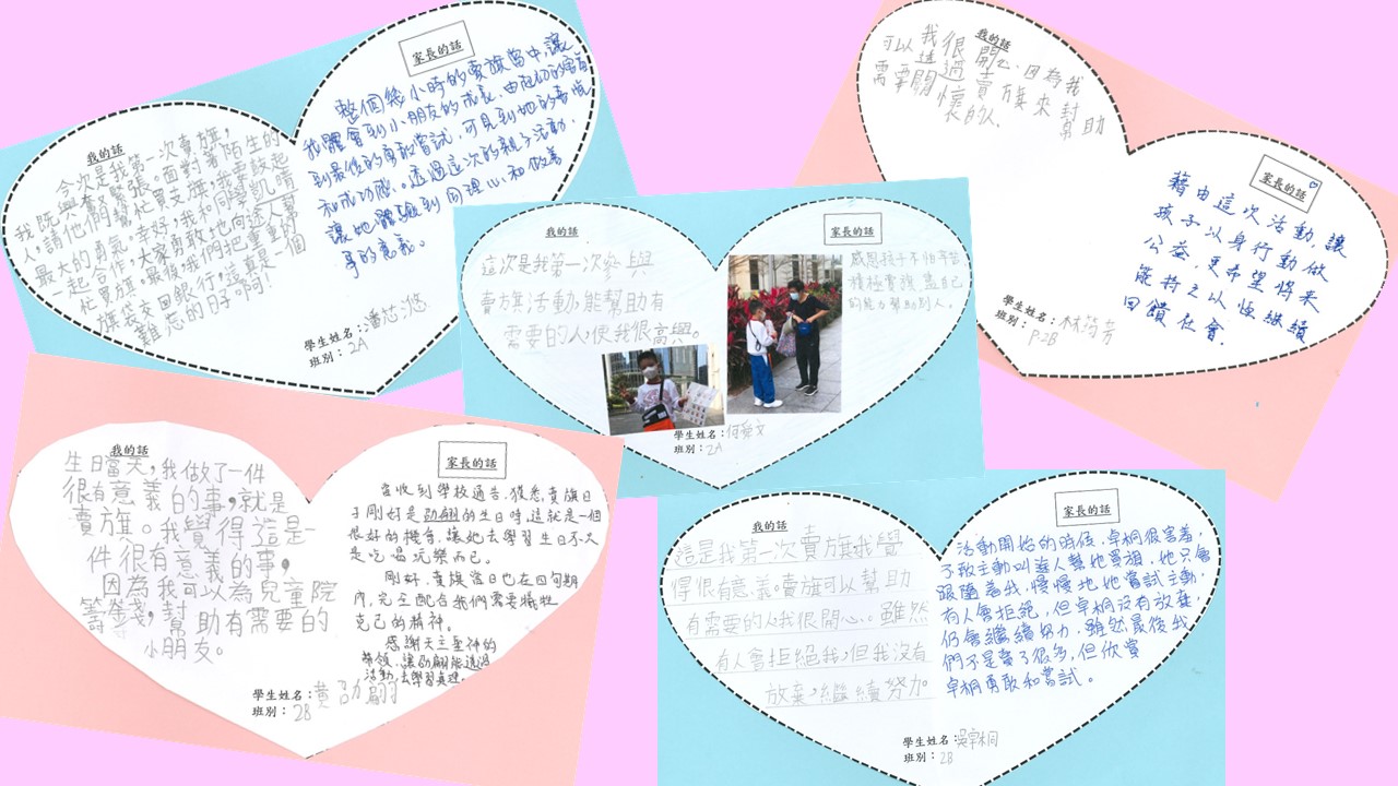本校於3月18日(星期六)參加賣旗服務,為聖公會聖基道兒童院籌款。同學及家長們都踴躍參加,反應熱烈,約有460位同學參與,這個活動能訓練同學的耐性及膽量,自信而有禮貌地邀請不認識的途人買旗,培養正向態度,也是一次很有價值的親子經歷。我們都深信親子義工服務不僅促進親子關係,更能讓同學們親身了解弱勢社群的特別需要,讓這份善心可以承傳下去。再次感謝大家的支持