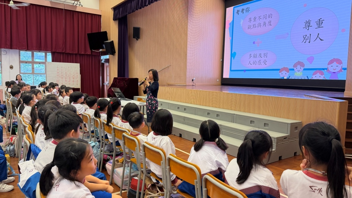 級會內容:是次級會主題為「尊重」,同學透過觀看短片及進行討論,明白到「尊重」的重要性。讓學生學會欣賞,知道即使對於同一件事物,各人都會有不同的觀點。我們應該對別人的觀點給予尊重,細心聆聽別人的看法,這樣才能開闊自己的眼界,以包容的心去接納他人,也能表達出對別人的尊重。