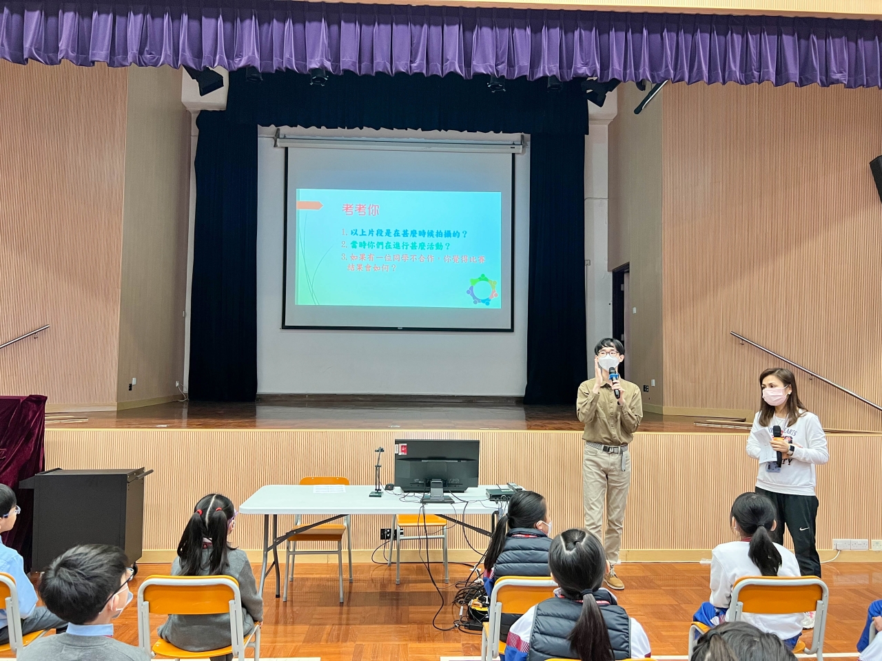 是次級會主題是「團結精神」,老師透過播放陸運會啦啦隊短片和新聞片段,帶領同學討論短片的問題,從中讓同學明白團結的重要性,我們可在學校、社會、世界發輝團結精神,作出貢獻。最後,老師引導同學作出總結:在一個團體中,要發輝團結精神,我們要擁有明確的目標,並有責任感,願意承擔,和同儕互相扶持,便能事半功倍。