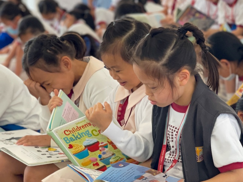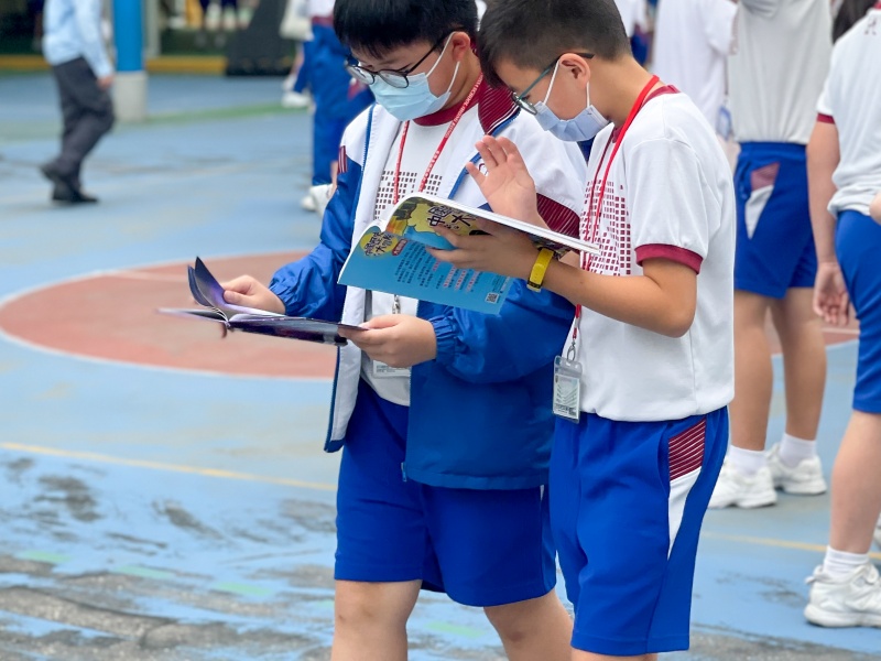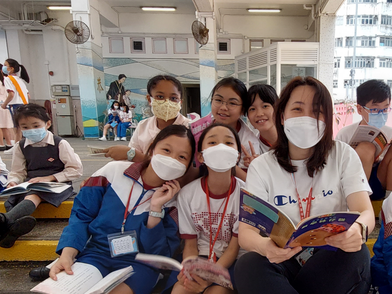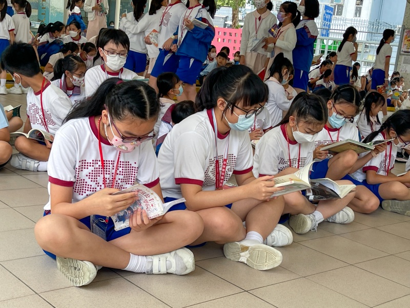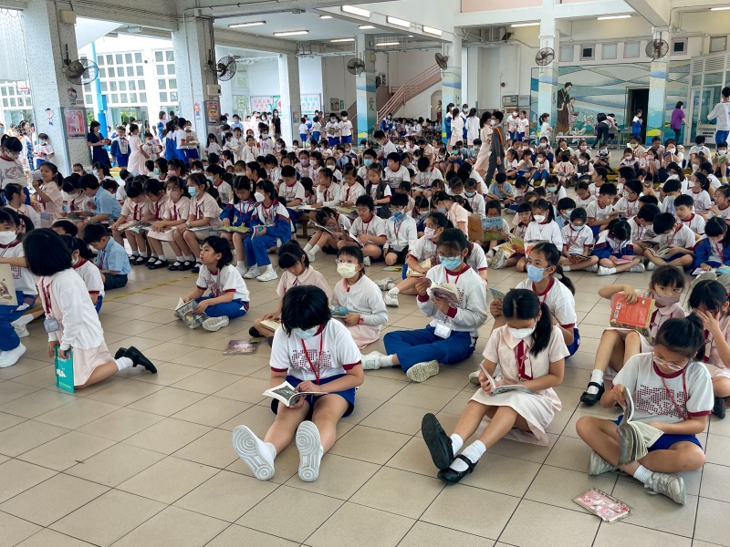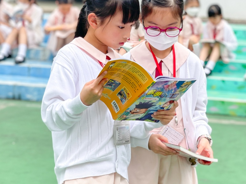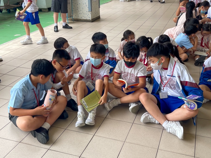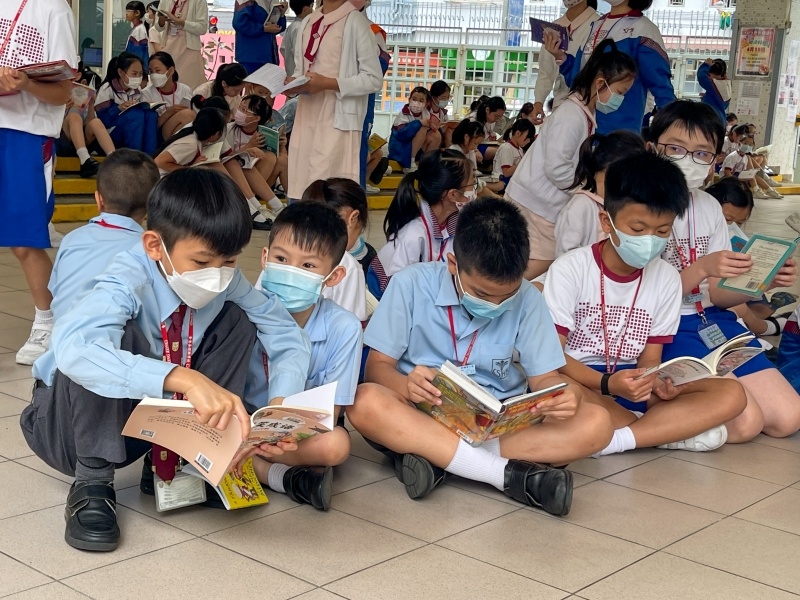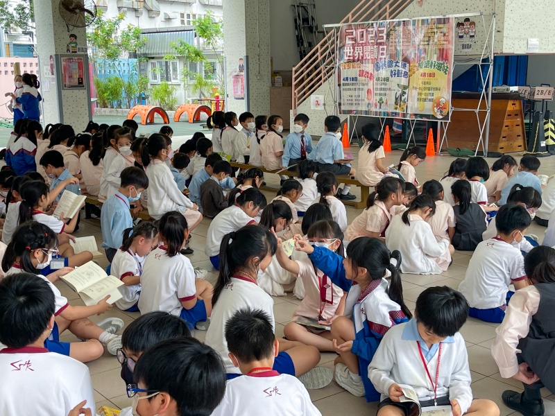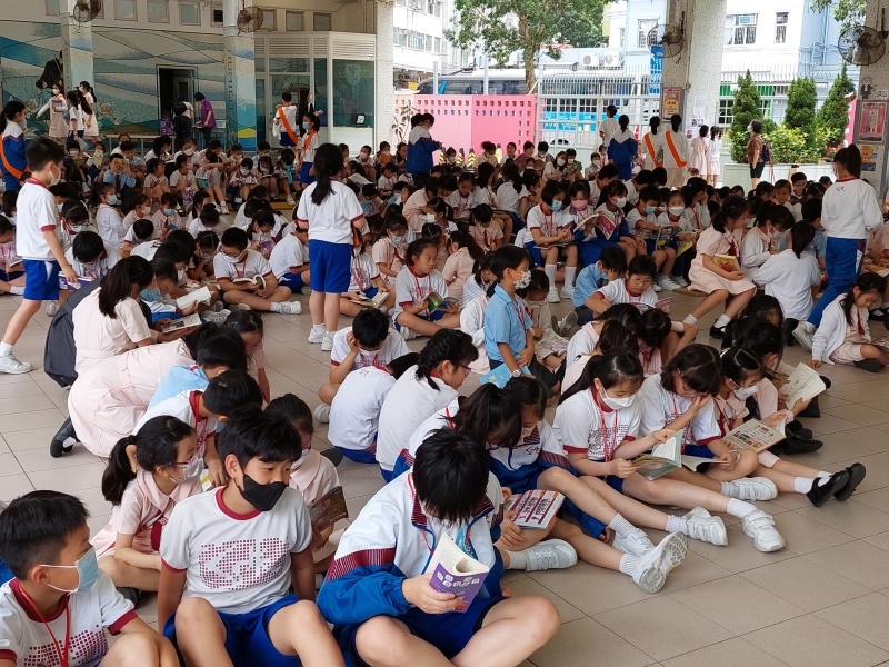 2. 18/4(二)同學於午息時段帶同一本心愛的圖書到禮堂下操場,全校一起來閱讀,享受「閱讀好滋味」