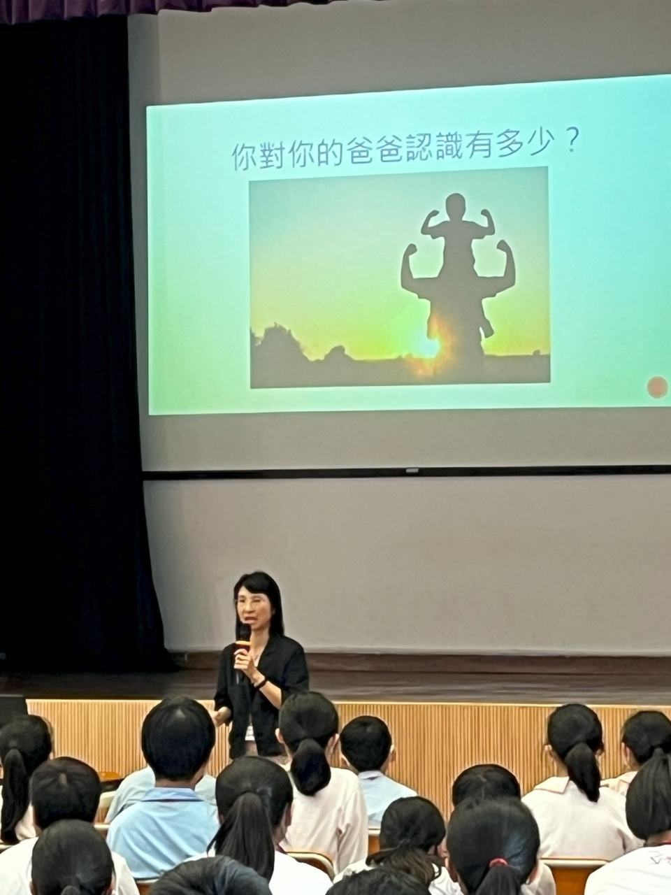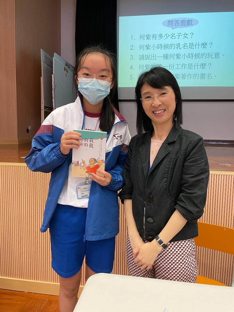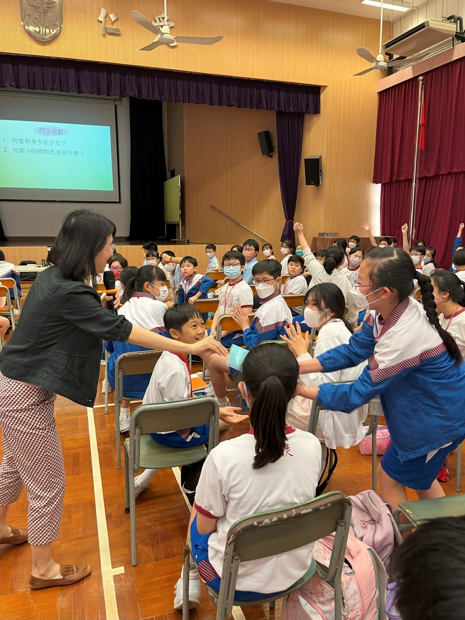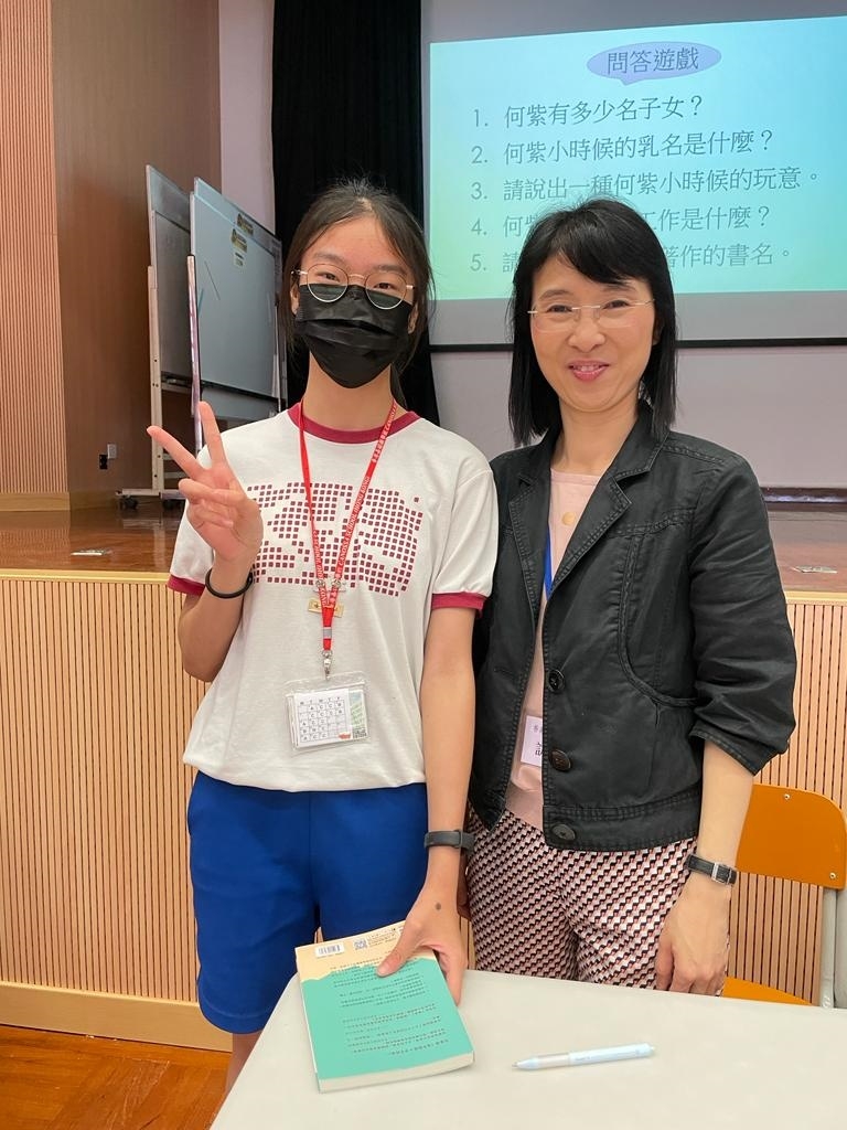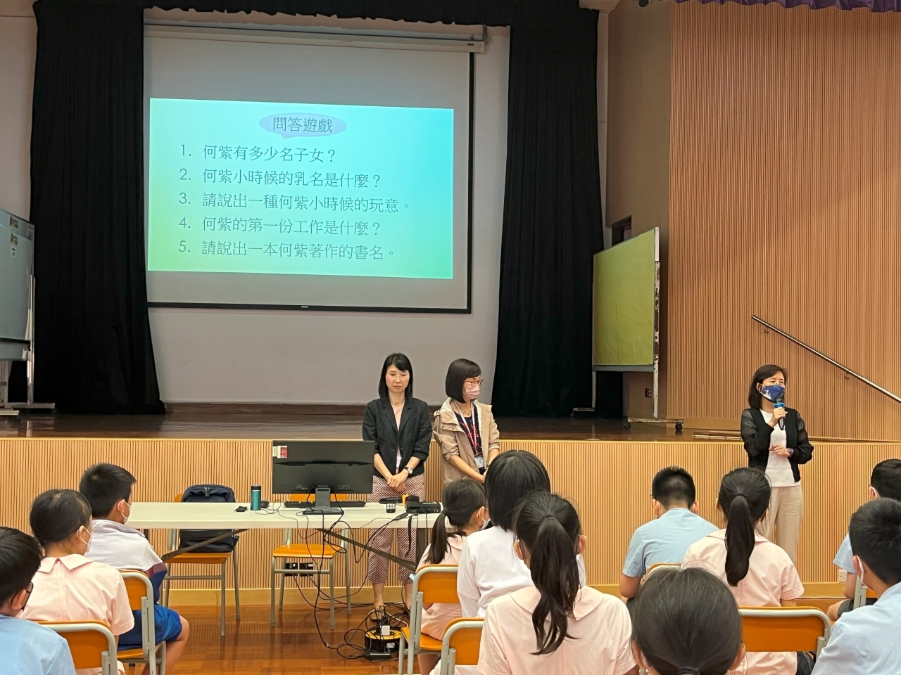 講座內容:女兒何紫薇小姐介紹父親生平,以及他筆下的小故事,並和同學進行問答遊戲,推動閱讀氣氛。