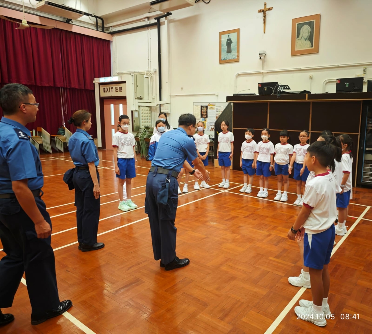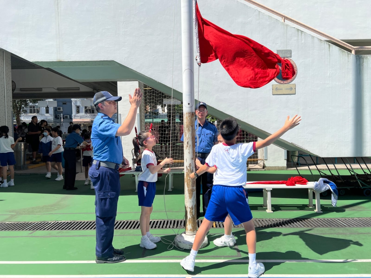 2024年10月5日(星期六)升旗隊進行培訓,今次訓練特別邀請校外升旗導師「民安隊」為同學作專業指導及訓練,目的是提升同學們的升旗技巧,並嘗試在操場進行步操及排練升旗禮。同學們都很認真地學習,專心聽講,積極嘗試,經過這次訓練後,同學們對於在操場舉行升旗禮增添了不少信心。