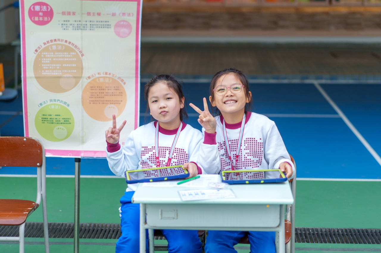 12月4日星期一是國家憲法日,當天早上舉行升旗禮及國旗下講話,內容講解憲法與基本法的關係,們要尊重憲法與基本法,然後播放介紹憲法的短片。這天小息及午息操場上都有問答遊戲攤位,問答題內容圍繞對國家的認識,同學們反應熱烈,大多數同學都可以答對問題,並且獲得禮物。午膳時播放由同學錄製的兒童繪本《天上的星星不簡單》,同學們都喜歡繪本故事。