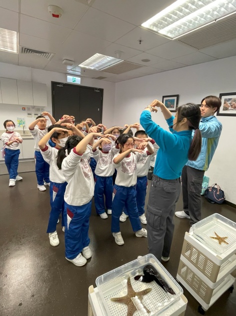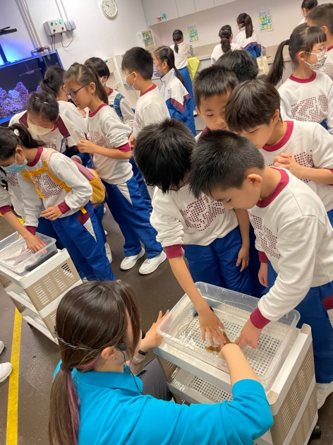 本校三年級學生於一至二月的上課時間內,前往香港海洋公園學院,參加公園的特別課程「邂逅海洋生物」或「保育大使」。部分班別參與「邂逅海洋生物」的課程,參觀「海洋奇觀」並與海岸生物近距離接觸,欣賞牠們的特別構造,透過層層疊遊戲解構海洋生物食物鏈密不可分的關係。部分班別則參與「保育大使」,參觀動物展館,探索大熊貓的身體特徵和生活環境的特點。透過了解大熊貓面對的威脅和現有的保育措施,提升學生對時事如何影響人類及動植物的關注。