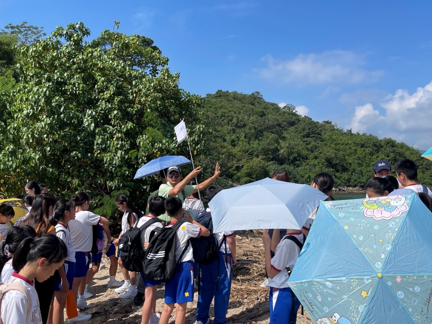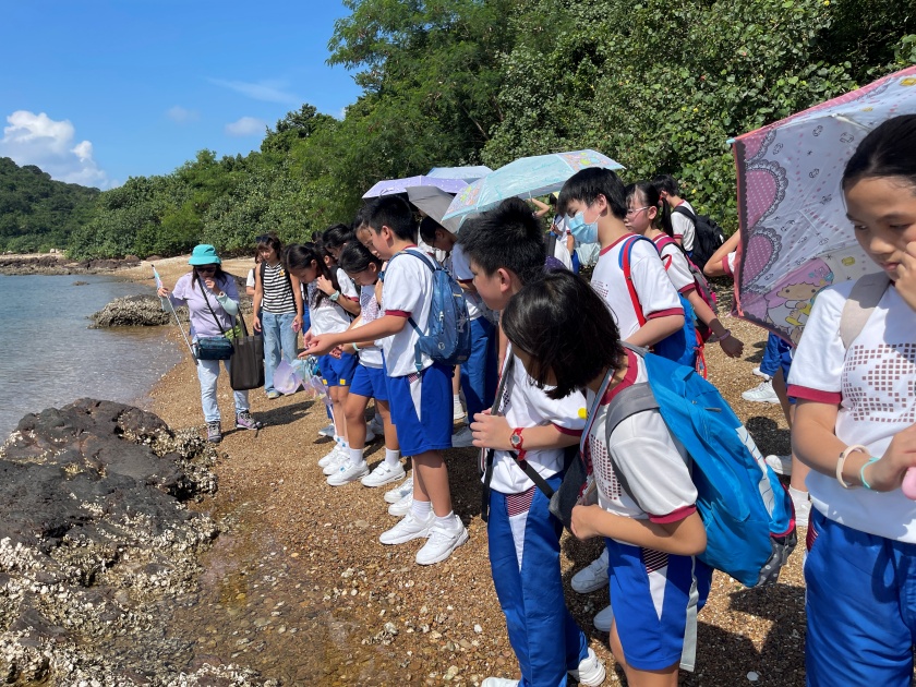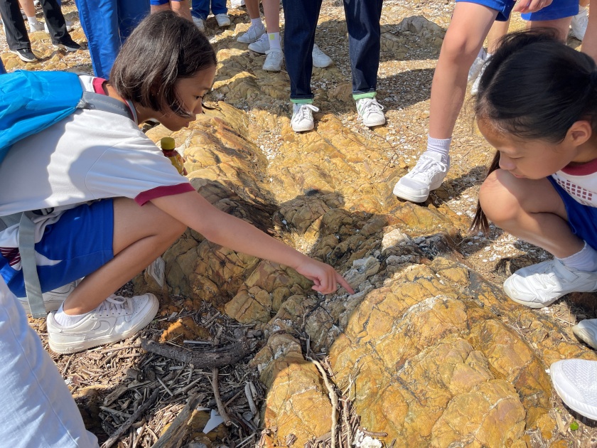 在馬屎洲自然教育徑,學生由領隊帶領上山,沿途能欣賞到吐露港、丫洲及馬鞍山等優美景色;然後由貝殼灘步行上山,透過實地觀察有趣的岩石,可以讓學生培養對香港地理的興趣,更可透過是次參觀,進行地質探究,認識岩石、粉砂岩、紅棕色泥岩等不同岩石,從中學習了不少有關於地理的知識。