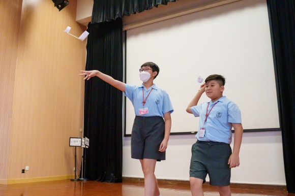 在製作完成後,學生們來到禮堂舞台上試飛自己的滑翔機。這個過程中,學生們展現了他們的創造力和技巧,讓舞台上的空氣中瀰漫著一種愉悅和輕鬆的氛圍。同時,學生們也學習到了團隊合作和分享的重要性,每個人都能夠分享自己的心得和經驗,讓大家共同成長。