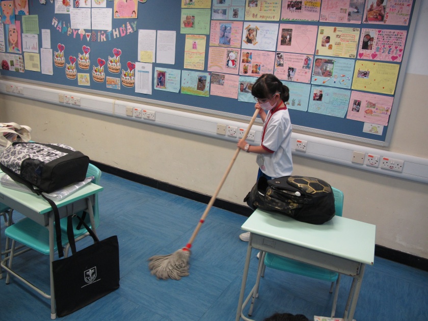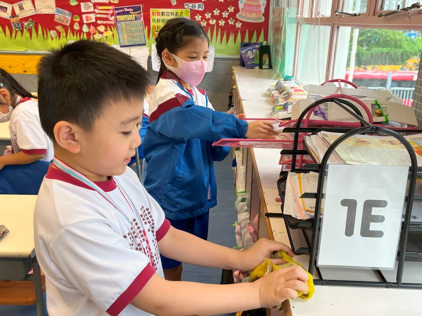 為了培養學生建立良好的環境衛生習慣及公民意識,本校於2023年5月8日舉行了校園清潔大行動,各班同學分工合作清潔自己的課室,包括抹學生及教師桌椅、抹黑板及膠櫃桶、整理壁報板及回收廢紙等,同學於活動中表現積極認真,經過同學的努力,課室變得潔淨整齊,煥然一新。透過校園清潔大行動,學生明白到保持學校環境整潔的重要性,並效法會祖精神,身體力行在生活中實踐勤勞及為人服務,培養同理心及責任感等正確的價值觀和態度。