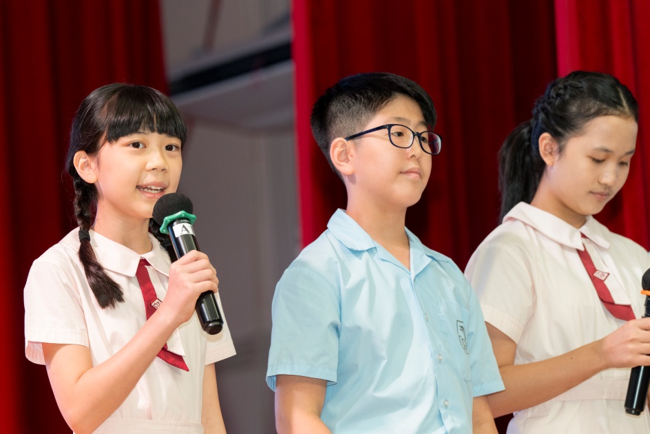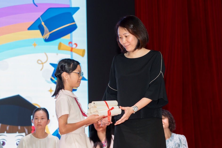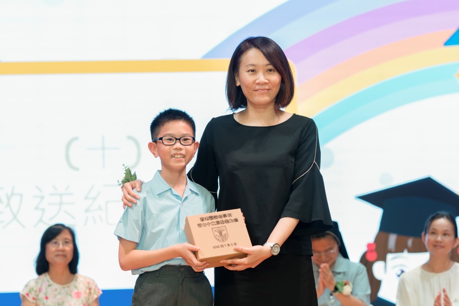 畢業典禮當天,六年級畢業同學代表致辭,以感謝母校和父母對畢業同學的悉心栽培。畢業同學們精彩的表演,實在令人難以忘懷,表演內容是由畢業同學表達他們對老師、父母的感激之情,畢業禮就在歡聲笑語中圓滿結束。在此,我們祝願本屆畢業同學前程錦繡。