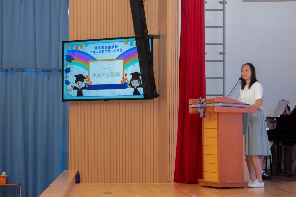 二零二四年七月四日,本校於嘉諾撒書院禮堂為同學舉行了一個簡單而隆重的畢業典禮。本校非常榮幸邀請教育局高級學校發展主任趙美靈女士擔任主禮嘉賓,給同學致訓勉辭及授憑。