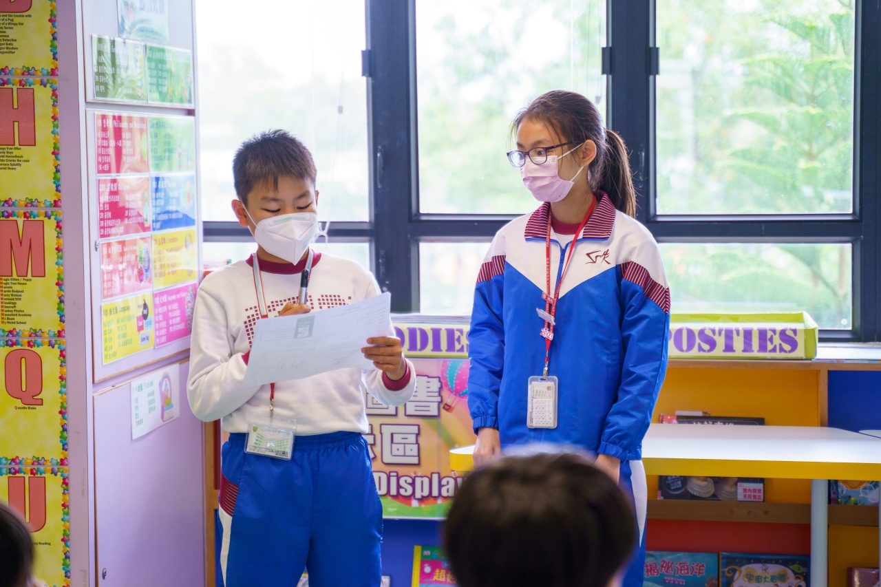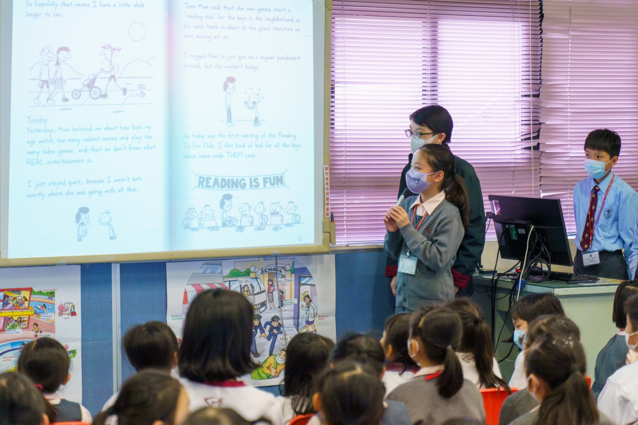 During recess time, P1-6 students gathered in the English Room and the library for an English Reader’s Theatre. Representatives from different classes were assigned a story to tell. The stories ranged from classic fairy tales to modern children's books. The students were enthusiastic and eager to share their stories with their peers.