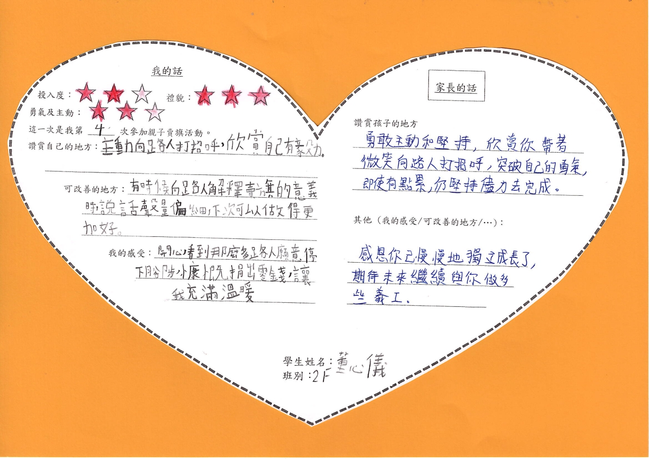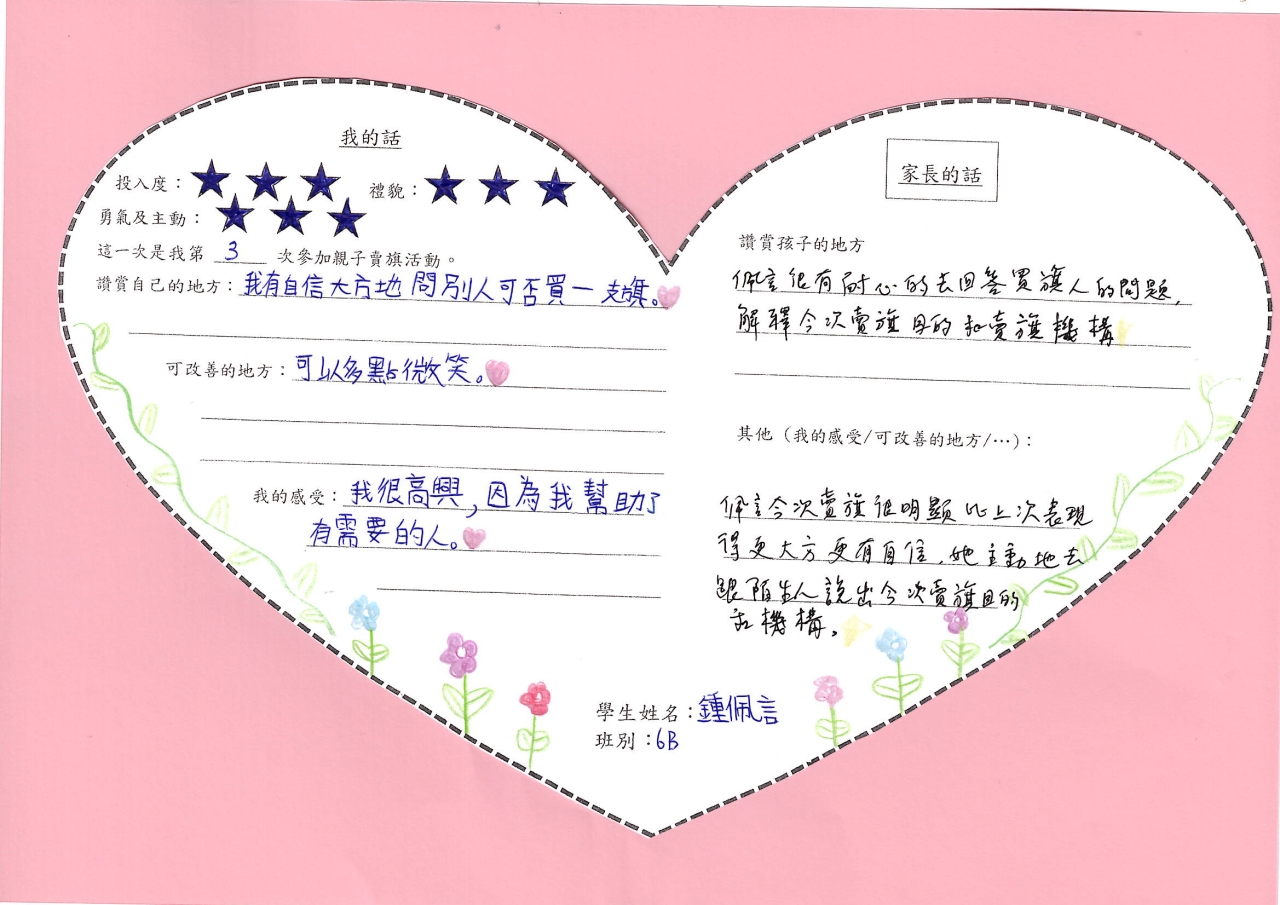 在活動過程中,學生表現積極主動,態度友善且有禮。他們主動走向路人,以清晰而溫和的聲音邀請途人購買旗幟。即使面對匆忙的行人或婉拒的市民,學生們依然保持微笑,並不忘說聲「多謝」或「唔該」,展現出良好的禮貌與耐性