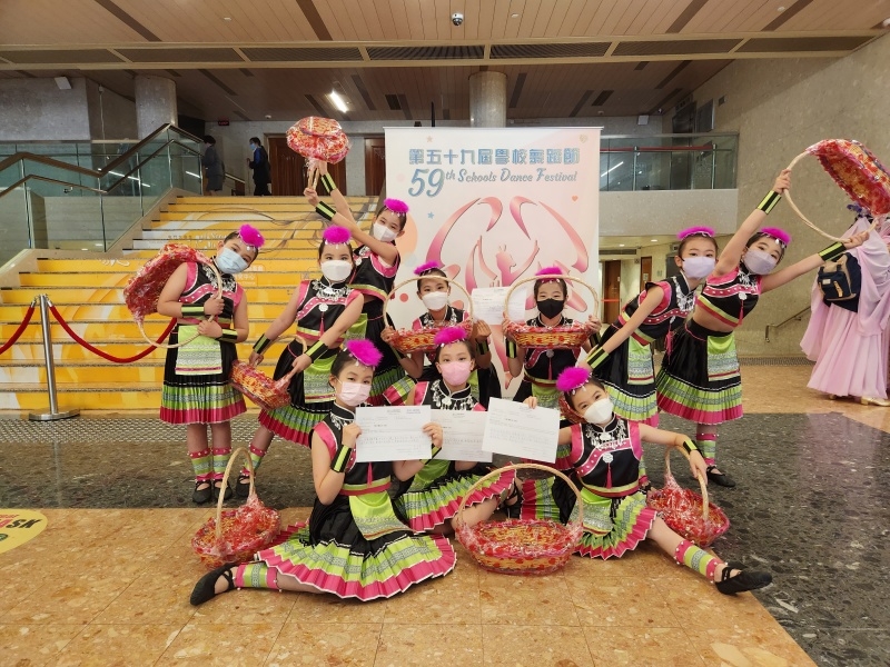 2月2日(星期四),本校10名四至五年級同學參加了第59屆「學校舞蹈節」比賽,榮獲「優等獎」。當天,同學演出的是「壯族」的民族舞蹈,名為「竹籃子響起來」。評判讚賞演員演出投入、隊形統一、整齊,拍子準確,彼此合作良好、有交流,訓練有素。