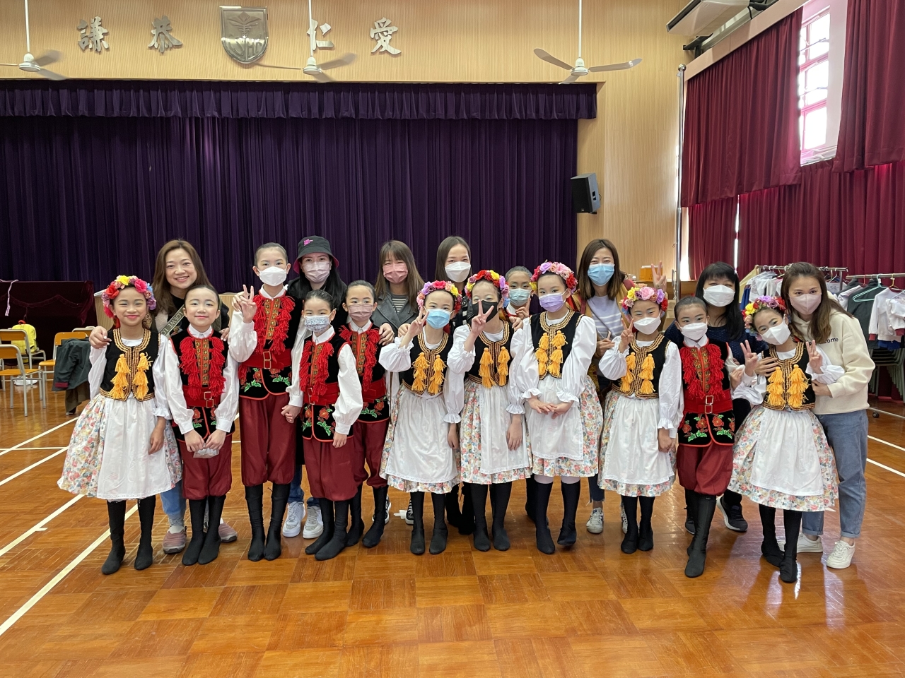 2月25日(星期六),本校12名四至六年級同學,參加了第59屆「學校舞蹈節」比賽,榮獲「甲等獎」。當天,同學演出的是波蘭的民族舞蹈——「波蘭勇士舞」,描述一班波蘭勇士們打勝仗回國後,與朋友們一起高歌,慶祝凱旋而歸。