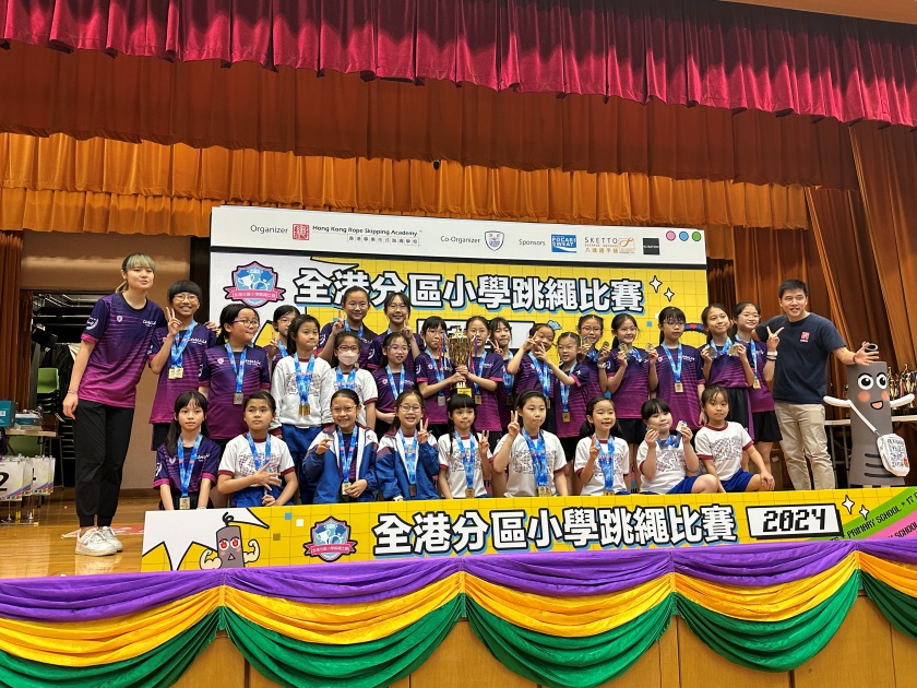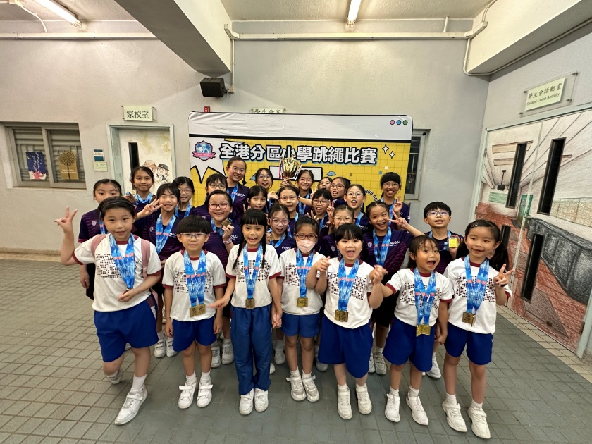 本校花式跳繩隊及初班於4月6日(星期六)參加全港分區小學跳繩比賽 2024,當天各隊員竭盡所能,最終獲得港島東區(女子組)總成績冠軍。比賽期間隊員均努力奮鬥,大家互相支持和鼓勵。校方特別感謝當天出席為同學打氣和協助的家長。