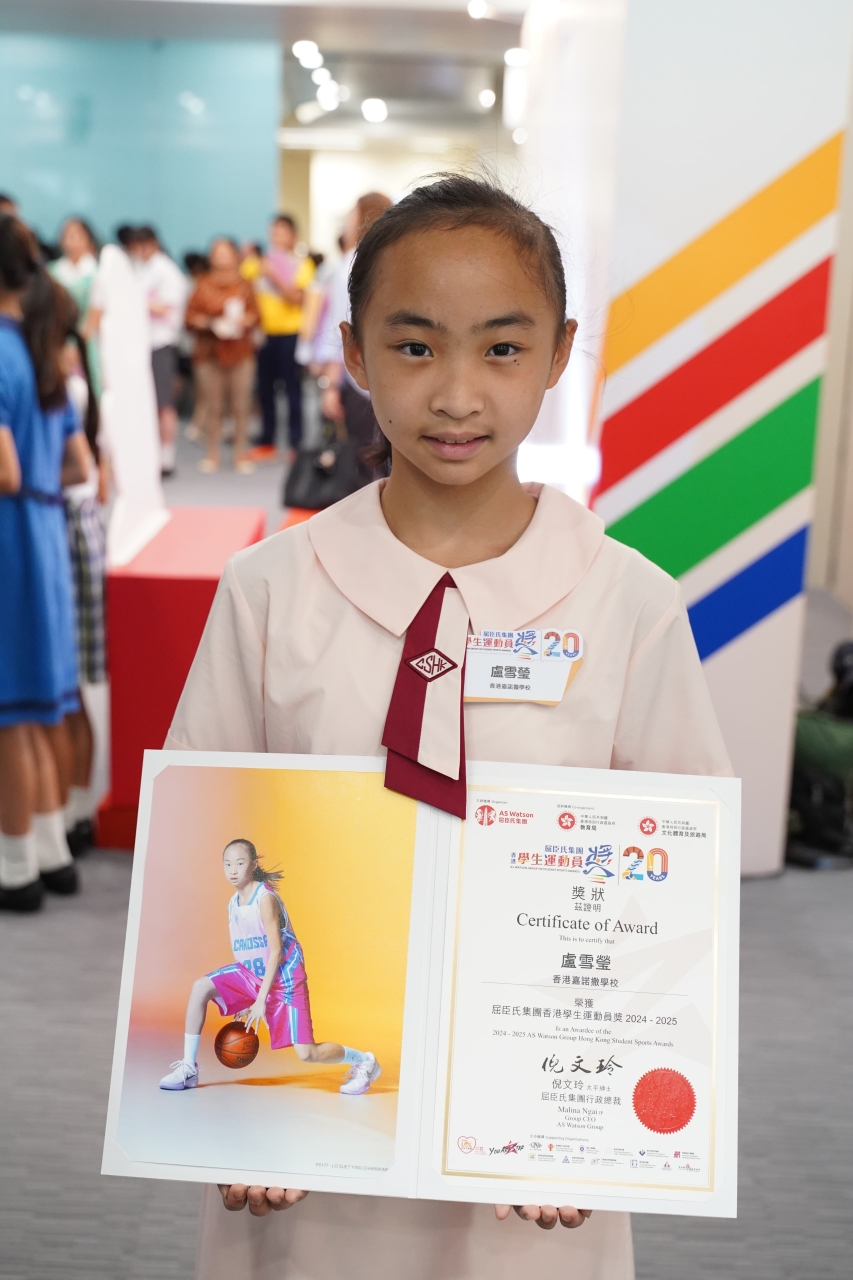 本校6E學生盧雪瑩被提名並榮獲「屈臣氏集團香港學生運動員獎2024 - 2025」,以表揚及鼓勵她在籃球運動中取得佳績。