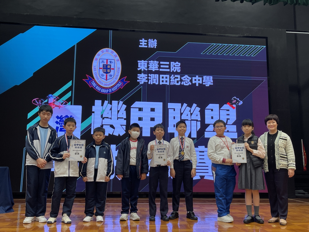 本校五至六年級共12名機甲大師隊員,前往基督教李潤田中學,參加機甲聯盟挑戰賽—分區賽(灣仔區)。比賽期間隊員均努力奮鬥,大家互相支持及鼓勵,充份發揮團體精神,最終取得格鬥機械人大賽殿軍及傑出表現獎;無人機穿越障礙賽優異獎;機甲大師陣地爭奪戰優異獎及傑出表現獎。各隊員均取得寶貴的比賽經驗。校方特別感謝當天出席為同學打氣和協助的家長。
