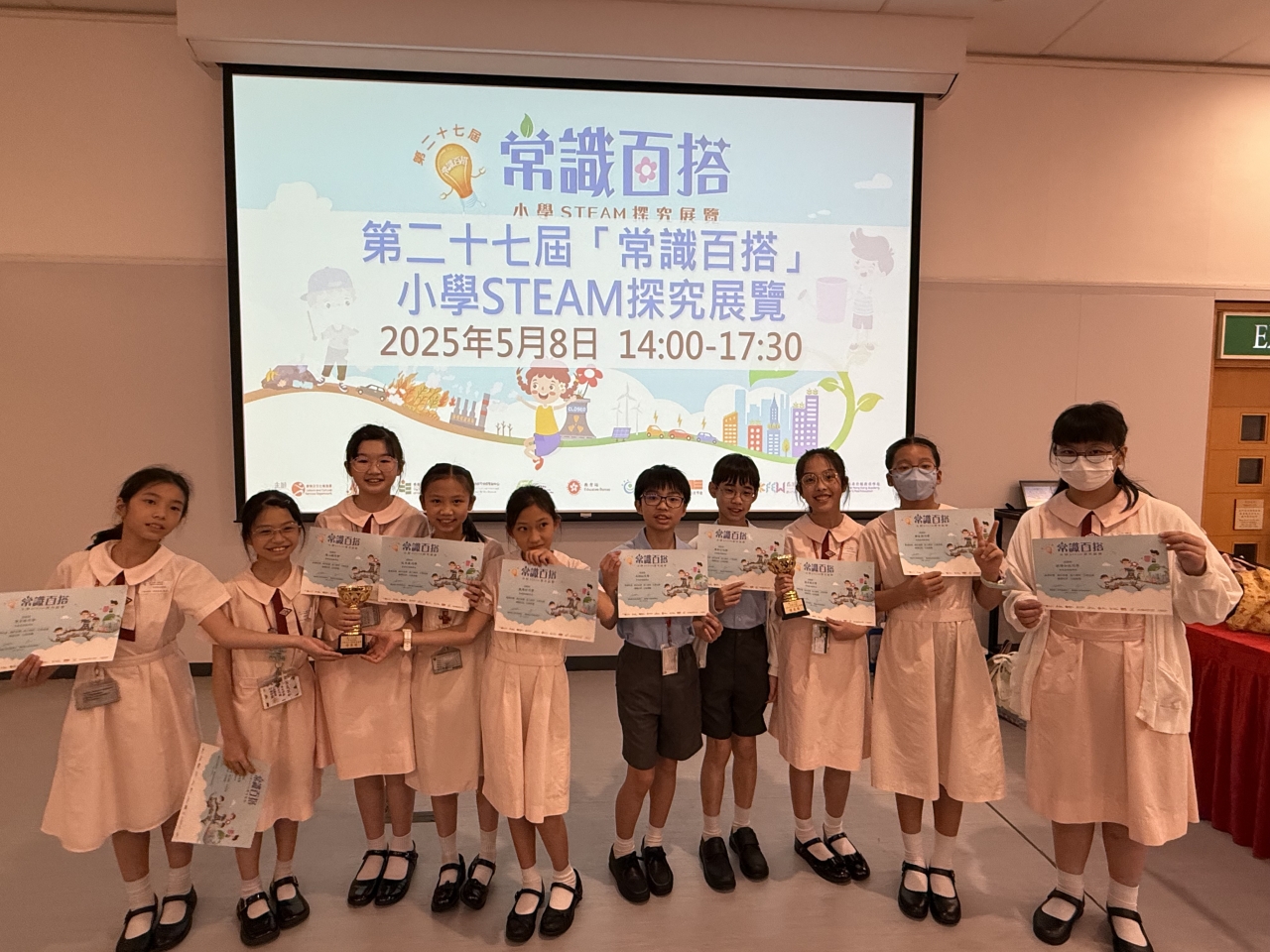 本校派出十位五年級學生參加由香港教育大學(教大)科學與環境學系以及環境與可持續發展中心聯同多家機構合辦的第27屆「常識百搭」小學STEAM探究展覽。兩支隊伍分別就土壤污染及室內空氣質素的主題開展研究,糅合學科知識和STEAM相關方法,動手創作發明品,獲得理想成績。以下為獲得的獎項: