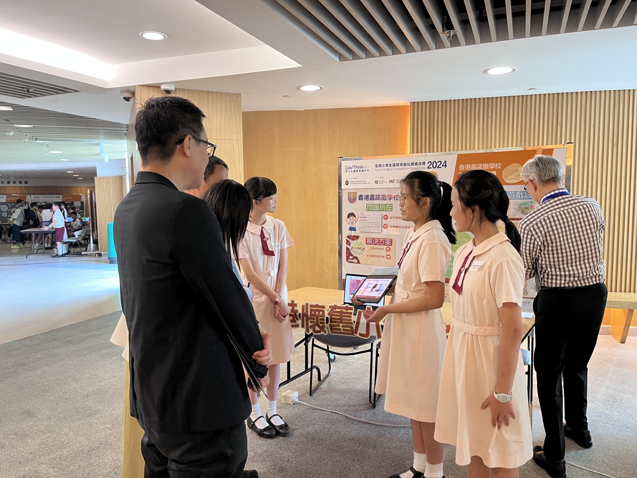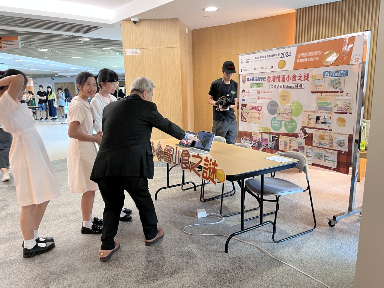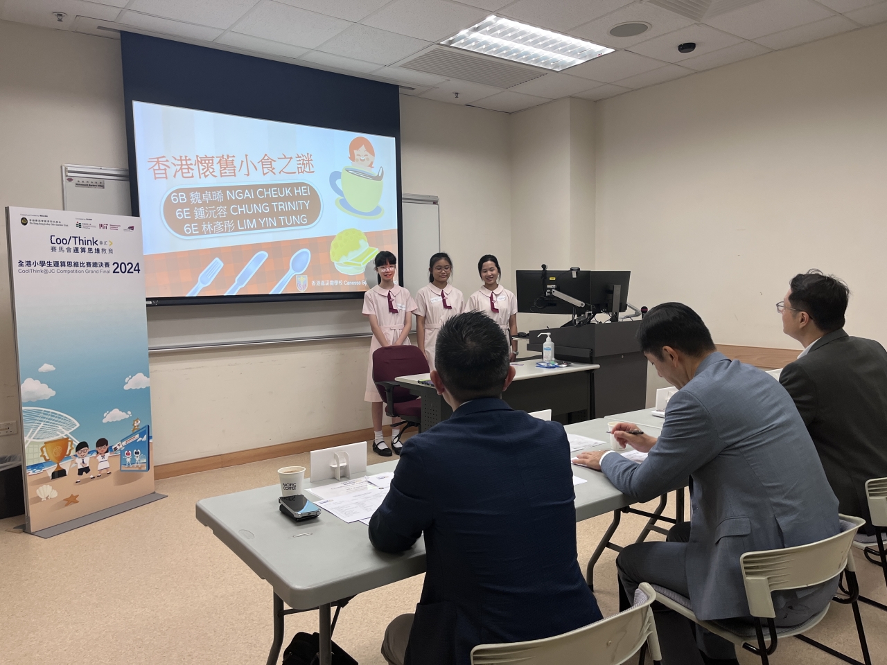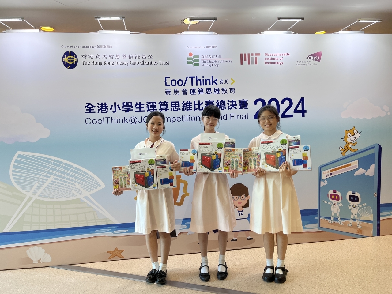 本校學生6B魏卓晞、6E鍾沅容和林彥彤在7月13日的賽馬會運算思維教育 – 全港小學生運算思維比賽2024中展覽scratch遊戲編程作品。其作品意念來自關注長者的認知和肢體退化問題,遊戲設計而香港懷舊茶餐廳為背景,使長者一邊玩遊戲,一邊懷緬昔日情懷,從而強化判斷力和訓練肢體活動,減緩長者退化的問題。學生期望透過作品可以向公眾傳遞關心長者的訊息,並獲大會頒發最佳團隊協作獎。