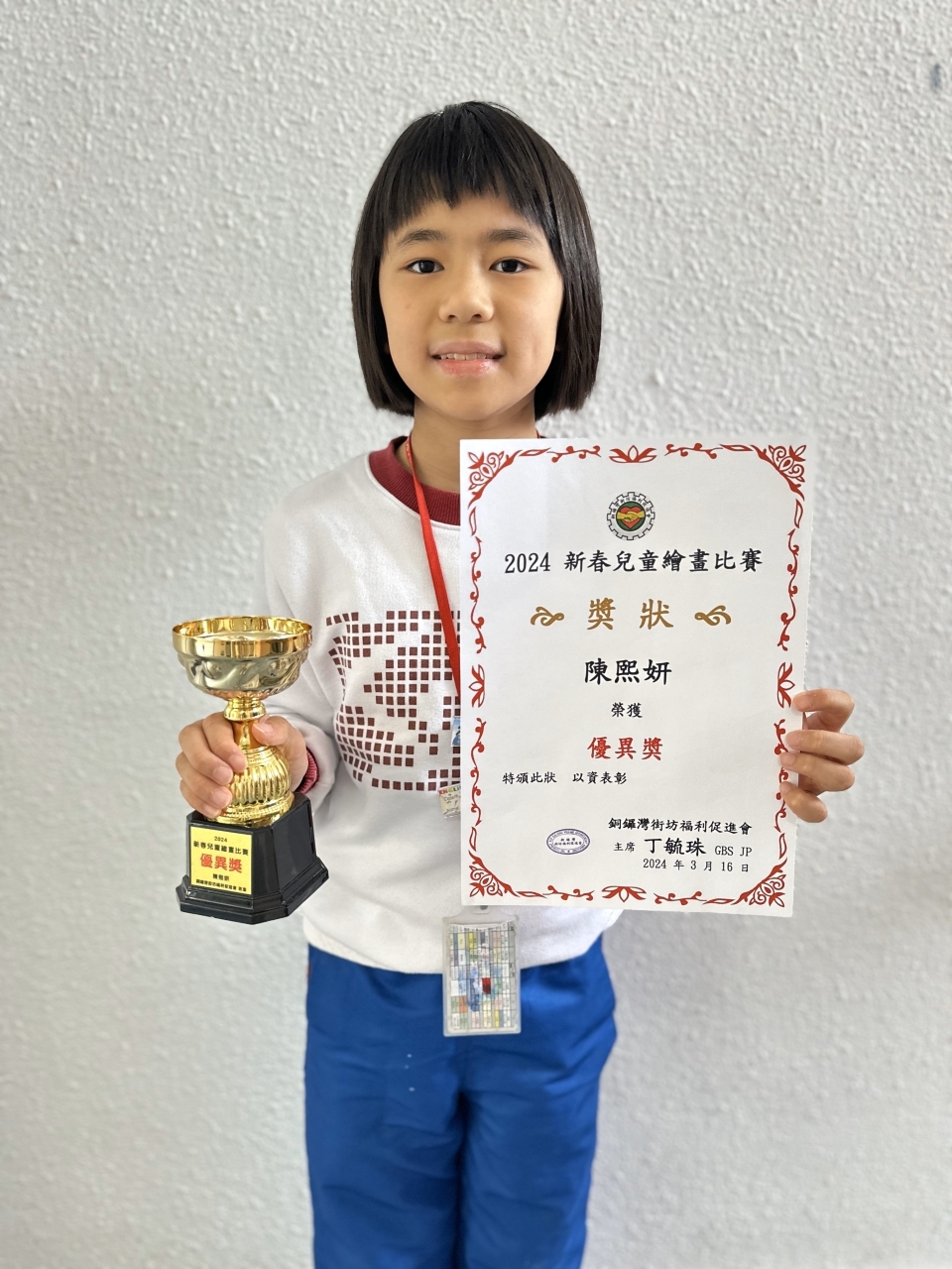 恭喜本校學生: 4C譚燕姿、5C 陳熙姸,於「銅鑼灣街坊福利促進會新春兒童繪畫比賽」獲得優異獎,在此感謝同學積極參與比賽。