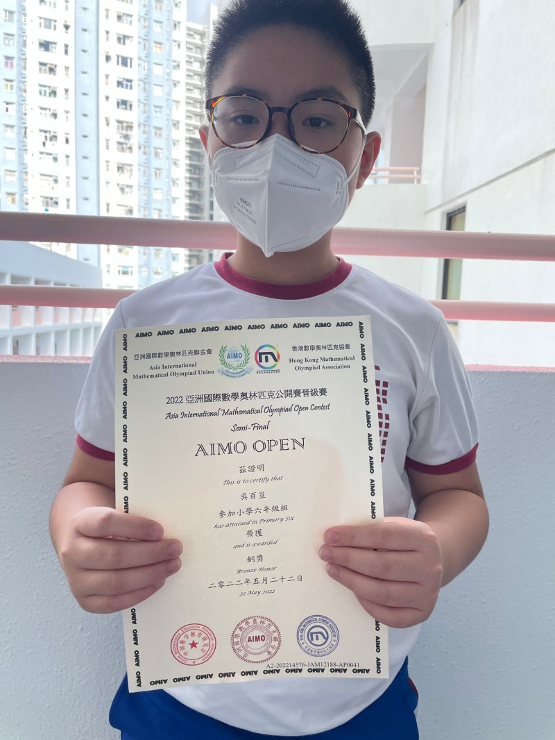 本校以下同學於「2022 亞洲國際數學奧林匹克公開賽(AIMO Open)晉級賽」中,勇奪以下成績,