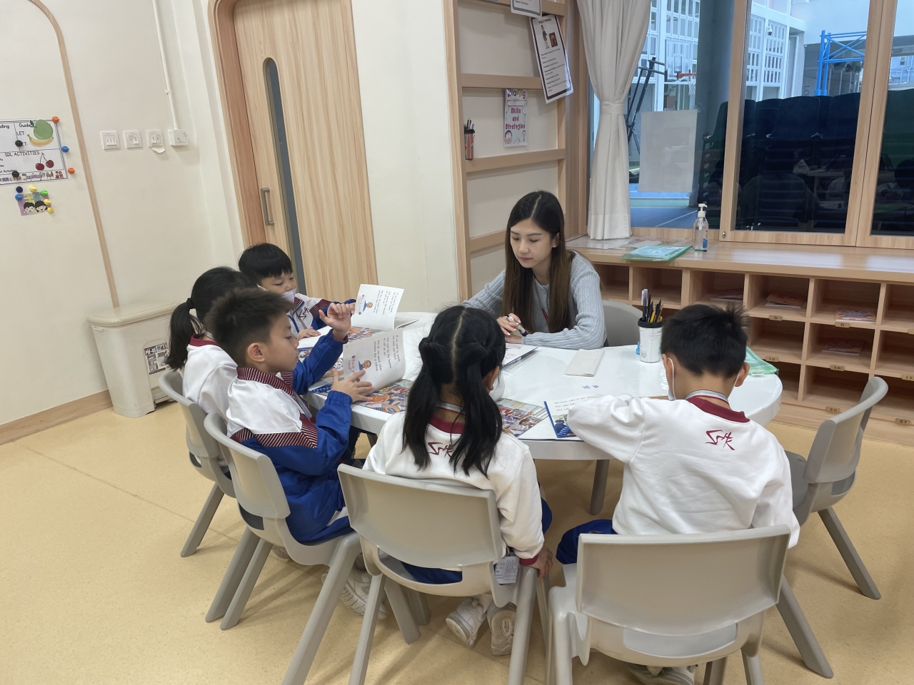 P1-6 students participate in shared reading lessons with Native English Teachers (NETs), enjoying a variety of storybooks. To further foster literary appreciation, we introduce works by renowned authors such as Roald Dahl, Enid Blyton, and Jacqueline Wilson. These books are selected for their engaging language and alignment with our school’s values of education.