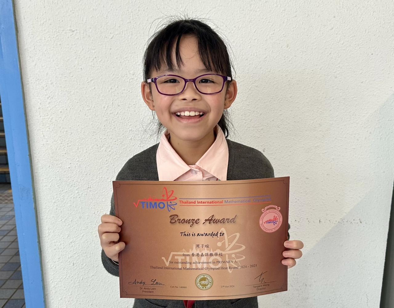 本校學生3E班周子暄同學參加了「Primary 3, Thailand International Mathematical Olympiad Heat Round 2024-2025」,取得「Bronze Award」。