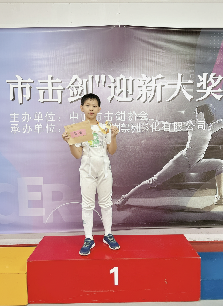恭喜本校4C班陳翰鋒於中山市擊劍新獎賽中表現出色,並在U10男子佩劍賽事中獲得冠軍!
