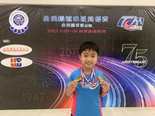 4E班鄭仲軒同學參加了2022年9月12日「沙田慶回歸兒童田徑錦標賽2022」,在60米短跑中奪得第三名(時間為9.49秒)及100米短跑中奪得第二名(時間為15.41秒)。