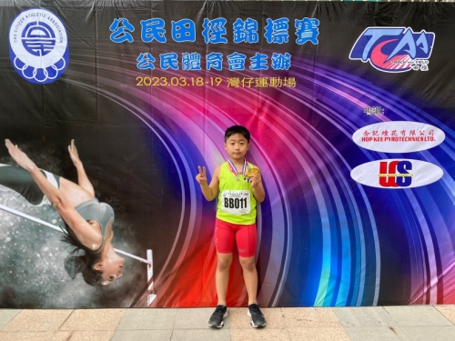 4E班鄭仲軒同學參加了2023年3月19日「公民田徑比賽」,在60米短跑和200米奪得冠軍。恭喜。