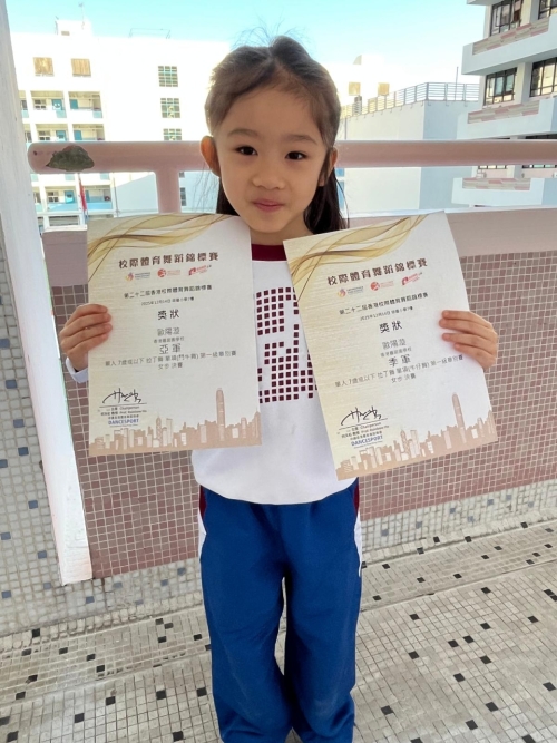 恭喜本校1F班歐陽旋於第二十二屆香港校際體育舞蹈錦標賽中表現出色,獲得以下獎項: