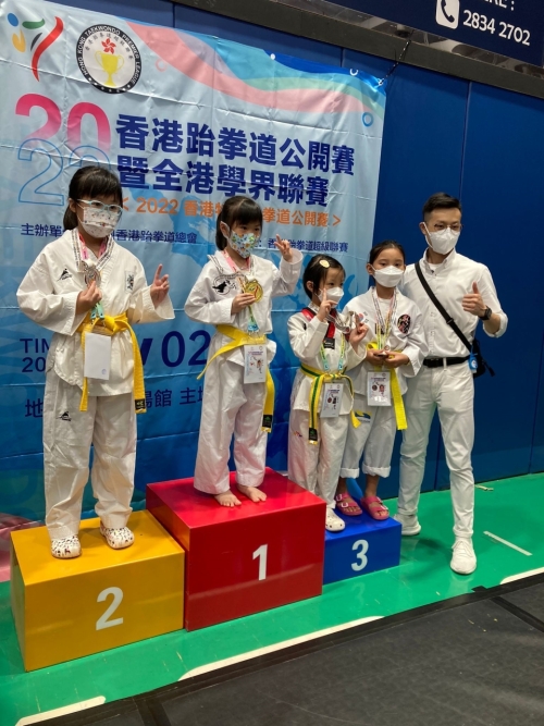 2A班張子芮同學於2022年8月27日,參加了2022香港跆拳道公開賽暨全港學界聯賽,她在速度賽獲得季軍、在個人品勢賽獲得冠軍。