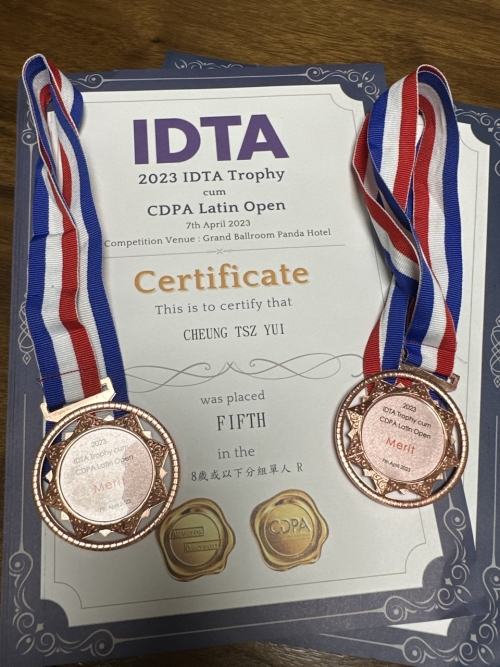2A班張子芮同學於7/4/2023參加了IDTA盃全港兒童及青少年舞蹈比賽,參加了兩個項目,獲得了兩個獎項。