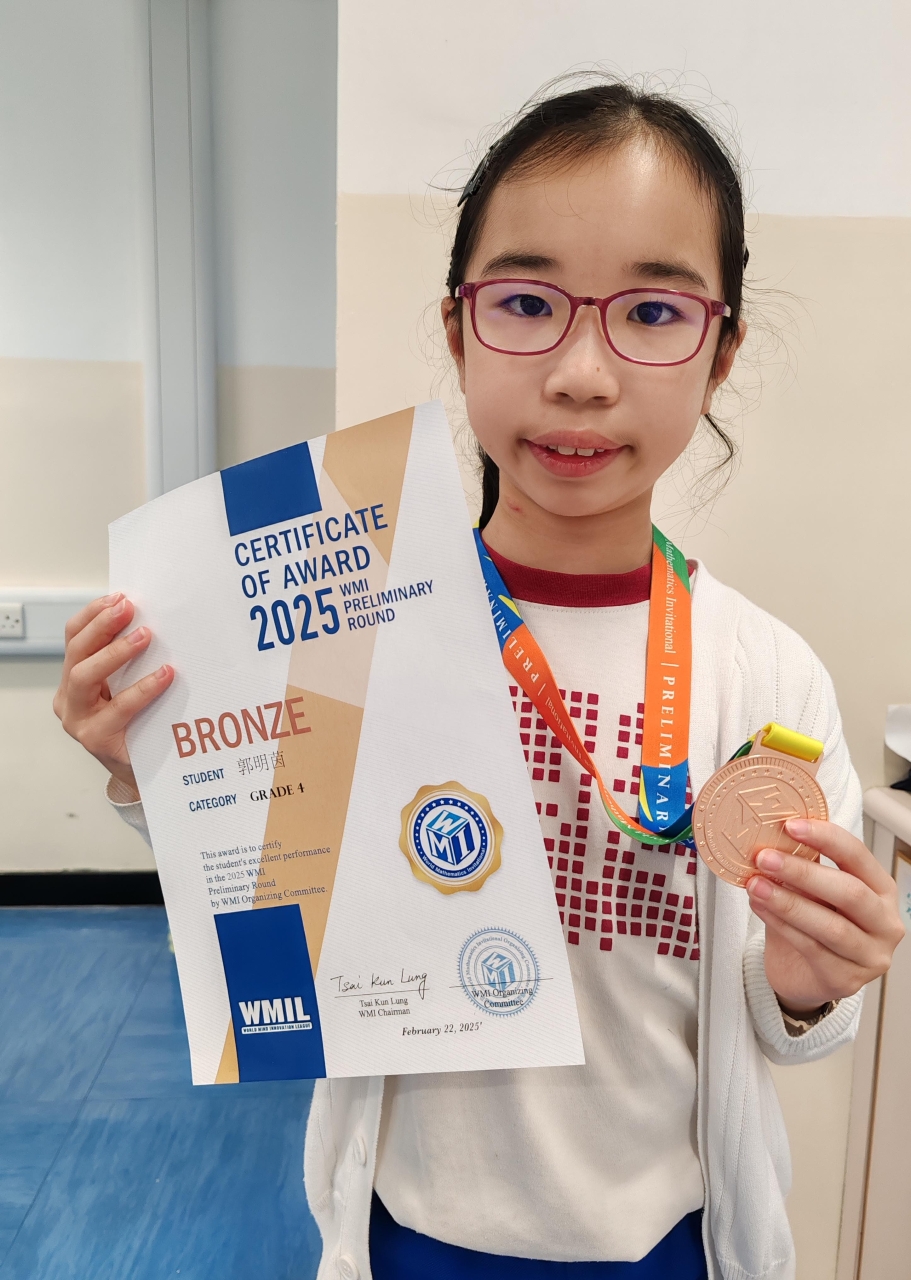 恭喜本校學生4C班郭明茵於2025世界數學邀請賽初賽中獲得銅奬,在此感謝同學積極參與比賽。