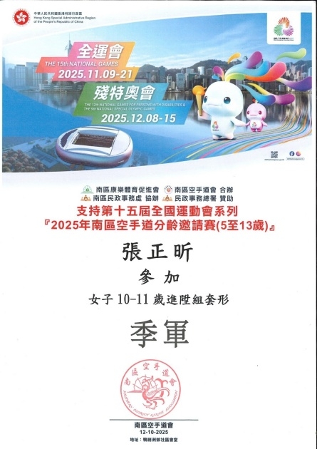 歲進陞組套形季軍,在此恭賀同學獲獎。