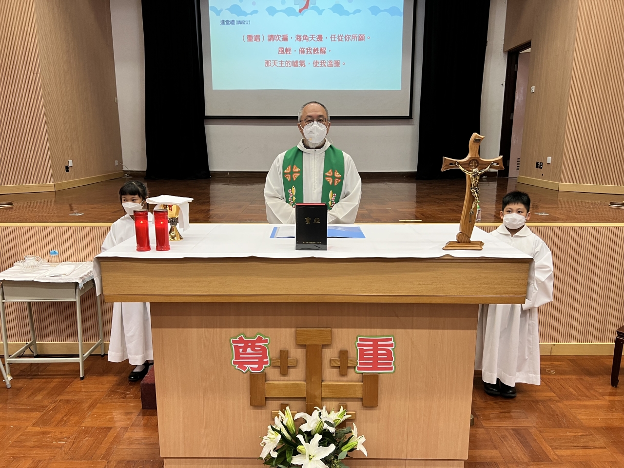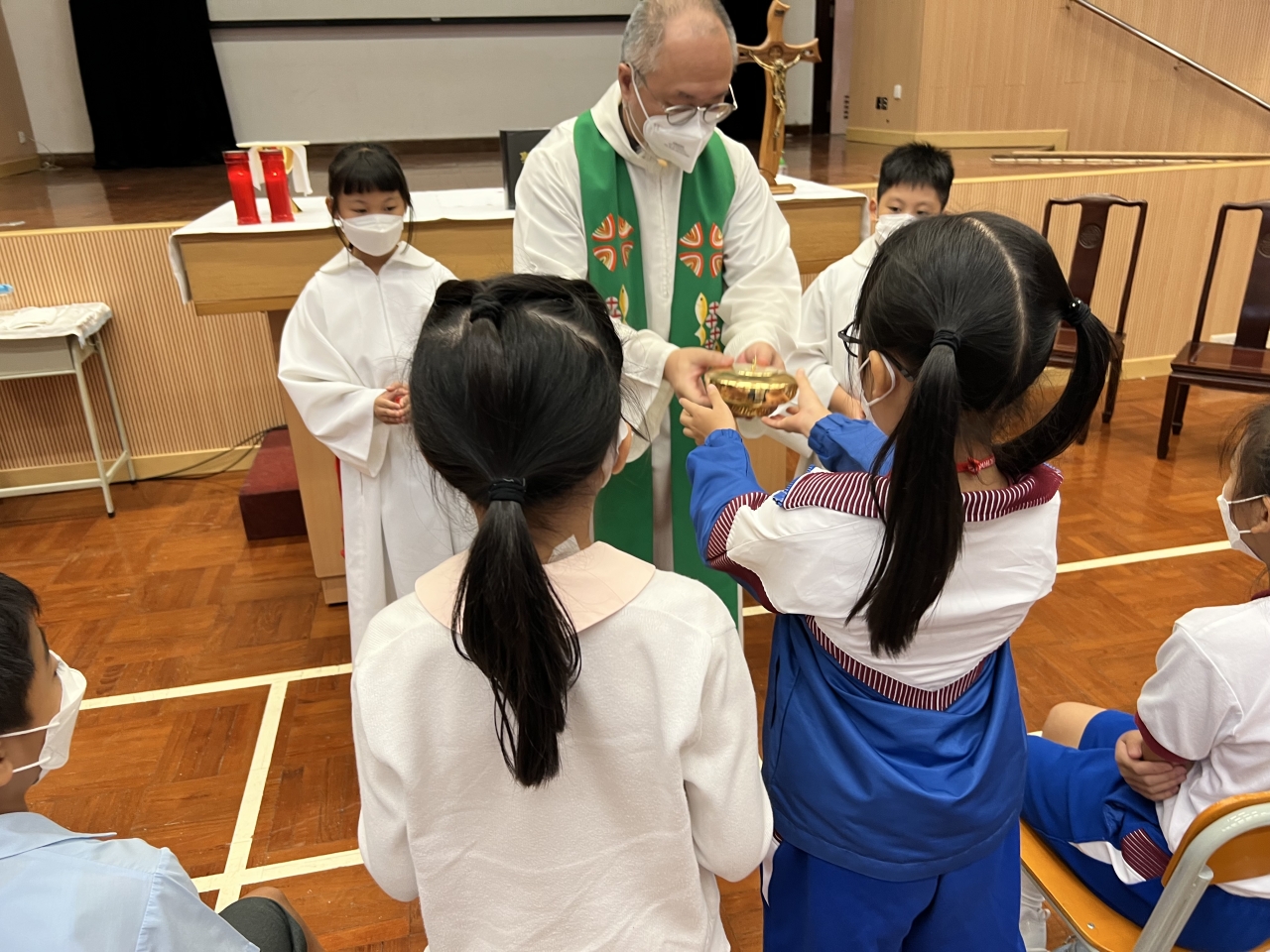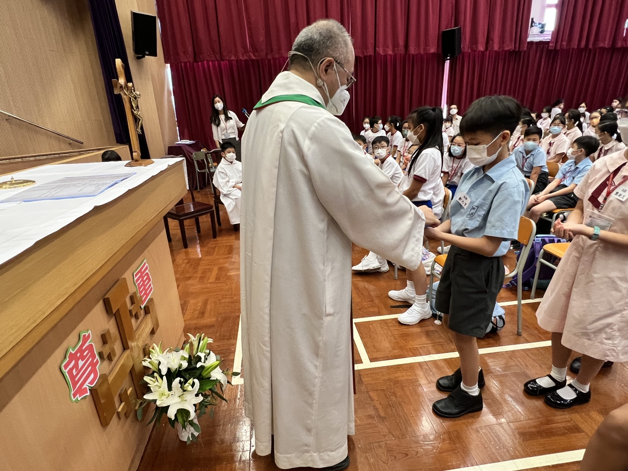學生懷著感恩的心,祈求天父在新學年保守我們,並在聖神的帶領下,善度學習生活。倪神父並以耶穌行實提醒同學要憐憫弱小,關愛近人,以愛德行為去表達尊重。